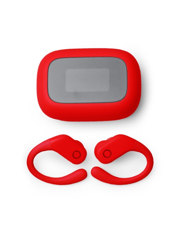 Auricolari wireless ergonomici realizzati in ABS, comodi e resistenti all'acqua. Sono presentati in una custodia individuale di ricarica con display touch screen. Entrambi gli auricolari dispongono di un pulsante multifunzione che può attivare il pulsante della fotocamera, il cercatore di auricolari e la torcia. Include anche un display con nove lingue disponibili. - Composizione: ABS - Misure: 8cm/4cm/5,5cm