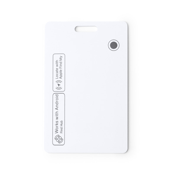 Localizzatore resistente all'acqua in formato scheda, realizzato in ABS. Compatibile con dispositivi iOS e Android tramite app via Bluetooth. Dispone di una funzione di ricerca con allarme acustico. Questo dispositivo può essere ricaricato in modalità wireless. Confezione di design. - Composizione: ABS - Misure: 8,5cm/5,5cm/1,5cm