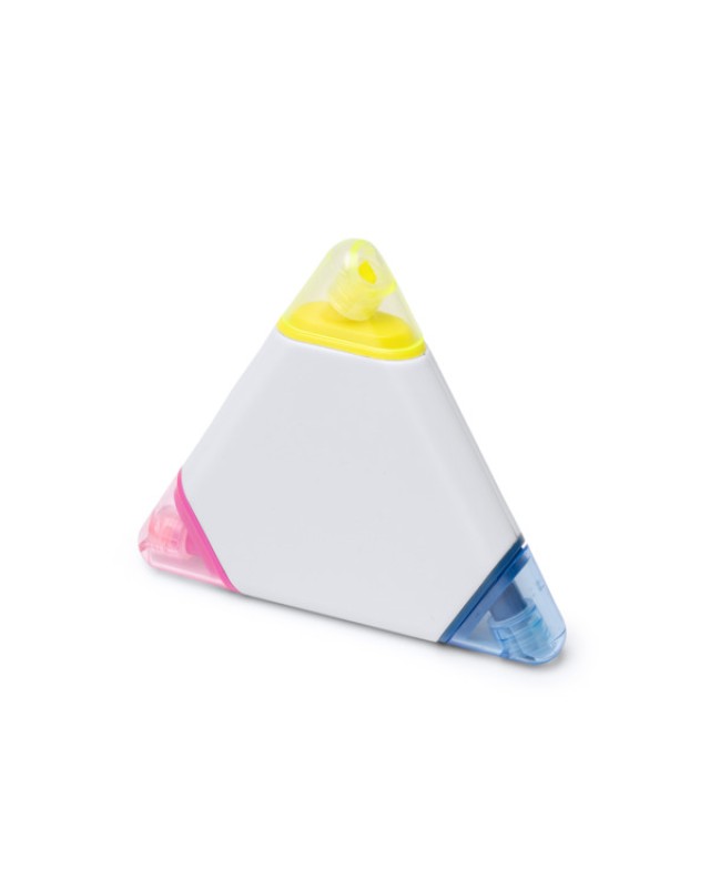 Pennarello 3 in 1 a forma triangolare. Corpo in PP. Include tre colori diversi, uno per ciascun angolo della forma triangolare, con tappo traslucido abbinato. - Composizione: PP - Misure: 9cm/8cm/1,2cm