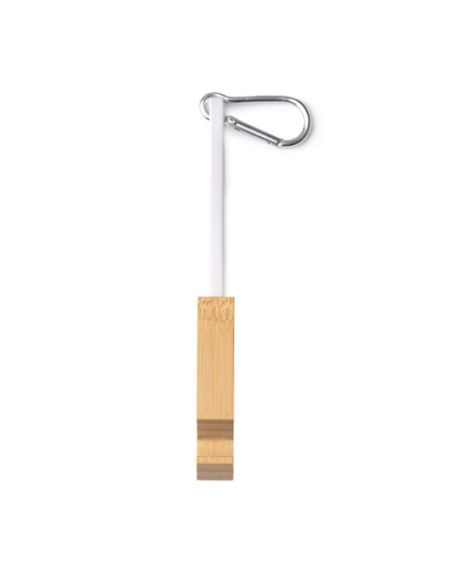 Cavo di ricarica 4 in 1 con adattatore Type-C e Lightning, ingresso USB e Type-C. Include un accessorio in bambù con supporto per smartphone che custodisce e protegge anche le estremità del cavo. Include un moschettone per il trasporto. - Composizione: Bambù - Misure: 18,5cm/2cm/1,5cm