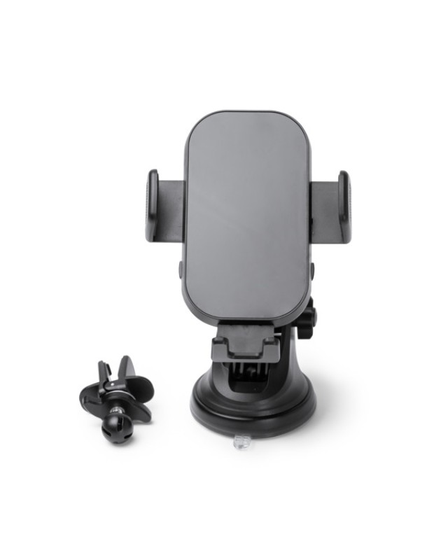 Supporto smartphone per auto con potenza di ricarica wireless fino a 15 W e due opzioni di montaggio intercambiabili. Un supporto è dotato di un morsetto meccanico per il montaggio sulla presa d'aria, mentre l'altro utilizza una ventosa per il montaggio sul parabrezza e include un braccio estensibile per il posizionamento ottimale. Il meccanismo di rotazione consente di regolare facilmente la posizione del supporto. Compatibile con tutti i dispositivi che supportano la ricarica wireless grazie alla regolazione laterale automatica. Consente anche la regolazione manuale nella parte inferiore per mantenere lo smartphone all'altezza ideale. Confezione di design. - Composizione: PC, ABS, Silicone - Misure: 6cm/11cm/5cm