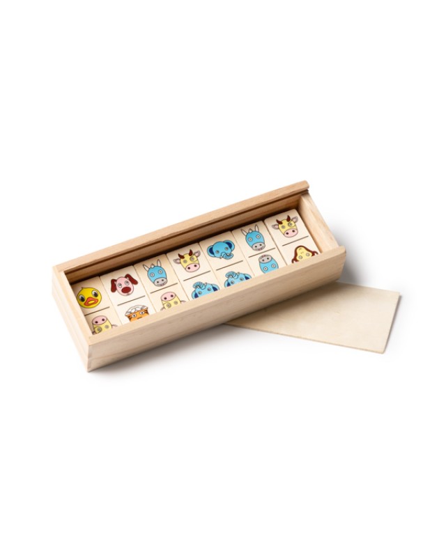 Domino in legno con 28 animali. Confezione in scatola di legno. - Composizione: Legno - Misure: 15cm/3cm/5cm