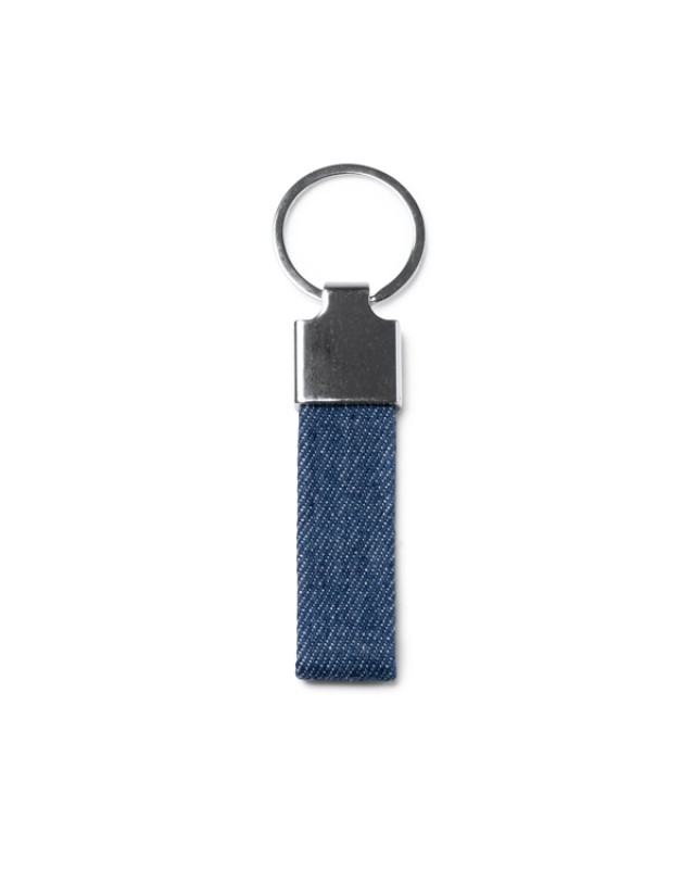 Portachiavi rettangolare realizzato in tessuto denim. - Composizione: Tessuto denim - Misure: 7,8cm/0,5cm/2cm