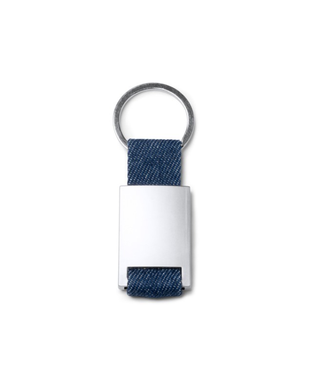 Portachiavi realizzato in tessuto denim con corpo in metallo. - Composizione: Tessuto denim - Misure: 6,5cm/0,5cm/2,7cm