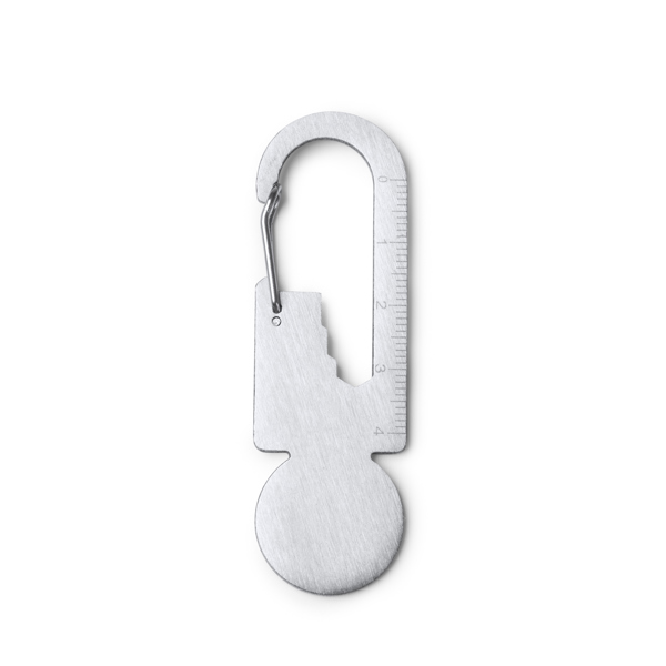 Portachiavi multifunzione con moschettone e moneta per il carrello della spesa realizzato in acciaio inossidabile 304. - Composizione: Acciaio inox - Misure: 2,5cm/7,5cm/0,6cm