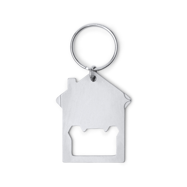 Portachiavi multiuso in acciaio inossidabile con motivo a forma di casa. Include un apribottiglie, un cacciavite a croce e uno a taglio sui lati, chiavi a brugola M3 e M4 ai lati dell'apertura centrale. - Composizione: Acciaio inossidabile - Misure: 7,2cm/0,3cm/3,2cm