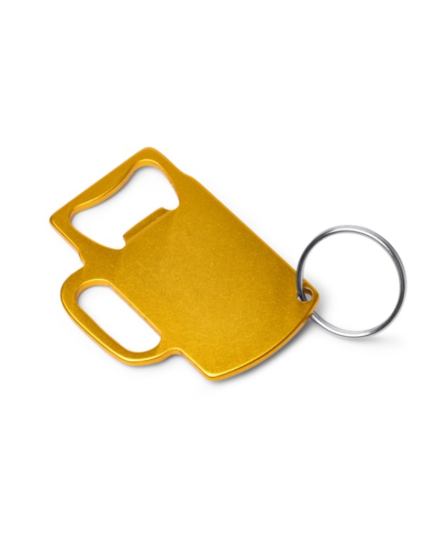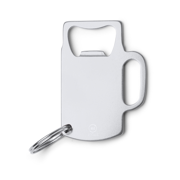 Portachiavi in alluminio riciclato con motivo a forma di boccale di birra. - Composizione: Alluminio riciclato - Misure: 8cm/0,3cm/4,4cm