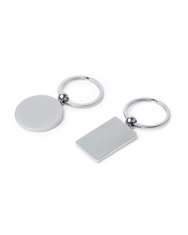 Portachiavi rotante in metallo con corpo in finitura opaca ed ampia superficie per il branding. Include un anello in metallo con finitura lucida. - Composizione: Metallo - Misure: 4cm/2,5cm/0,3cm