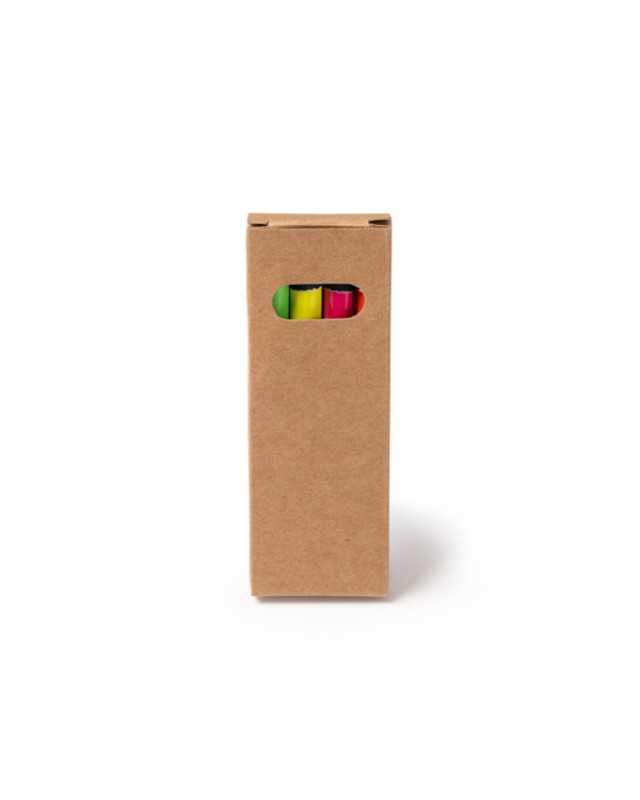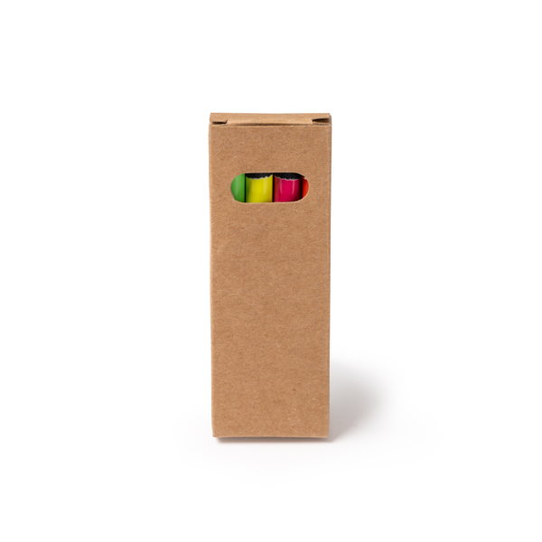 Set di 4 matite colorate fluo in legno nero. Confezione di design. - Misure: 9cm/0,8cm/3,2cm