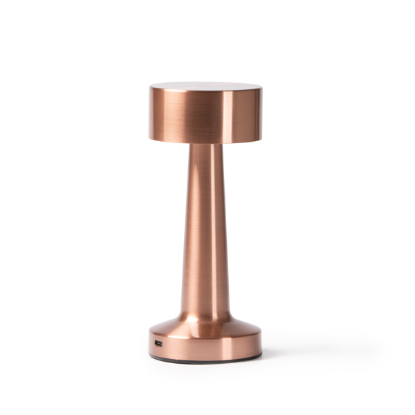 Lampada con corpo in metallo. 3 modalità di illuminazione a LED: bianco, neutro e caldo. Sistema di controllo touchscreen. 1200mAh. Include cavo di tipo C. Confezione in scatola con design ecologico - Misure: 21cm/9Ø