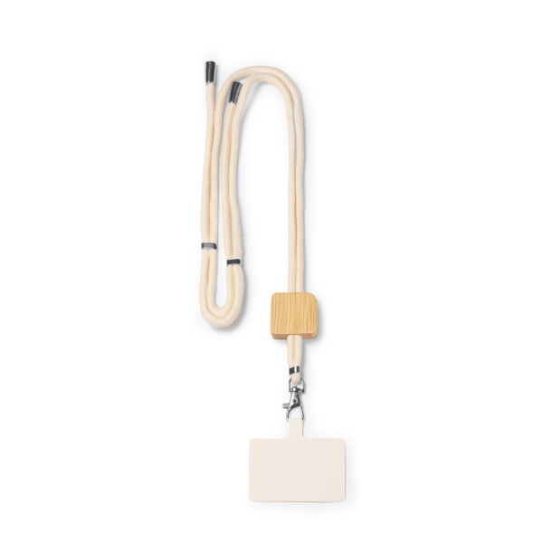 Porta cellulare in cotone con dettaglio in bambù e sistema di regolazione. - Composizione: Cotone e bambù - Misure: 80cm/3,2cm
