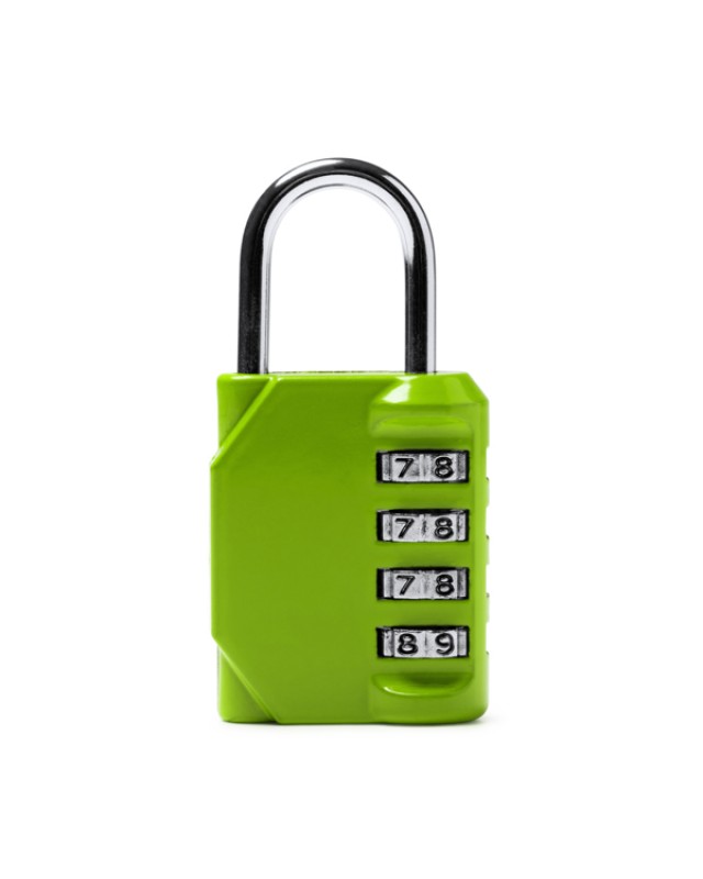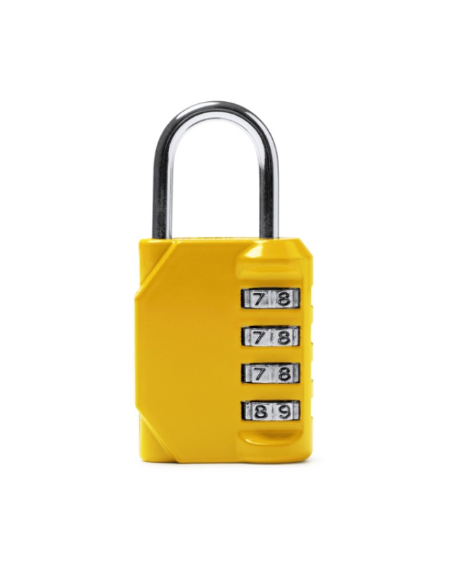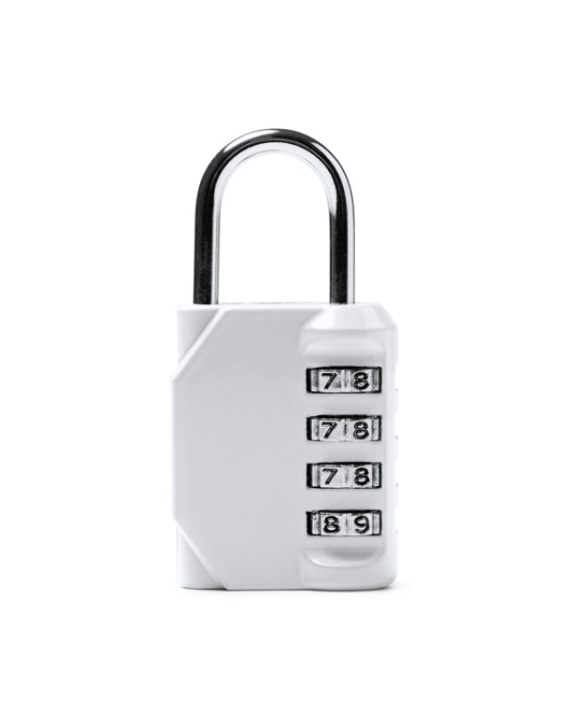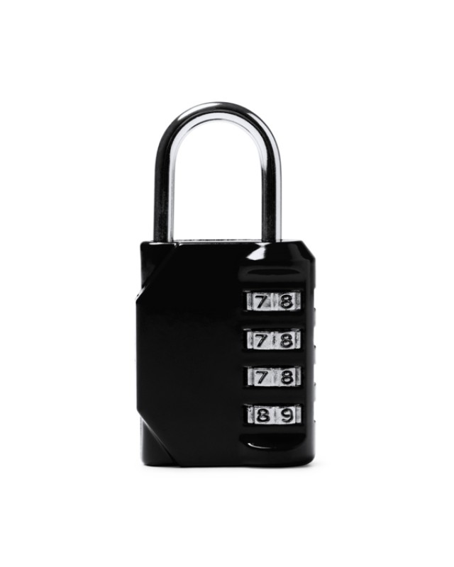 Lucchetto con combinazione a 4 cifre. Corpo e manico in acciaio inox. - Composizione: Acciaio inox - Misure: 3,25cm/6,45cm/1,6cm