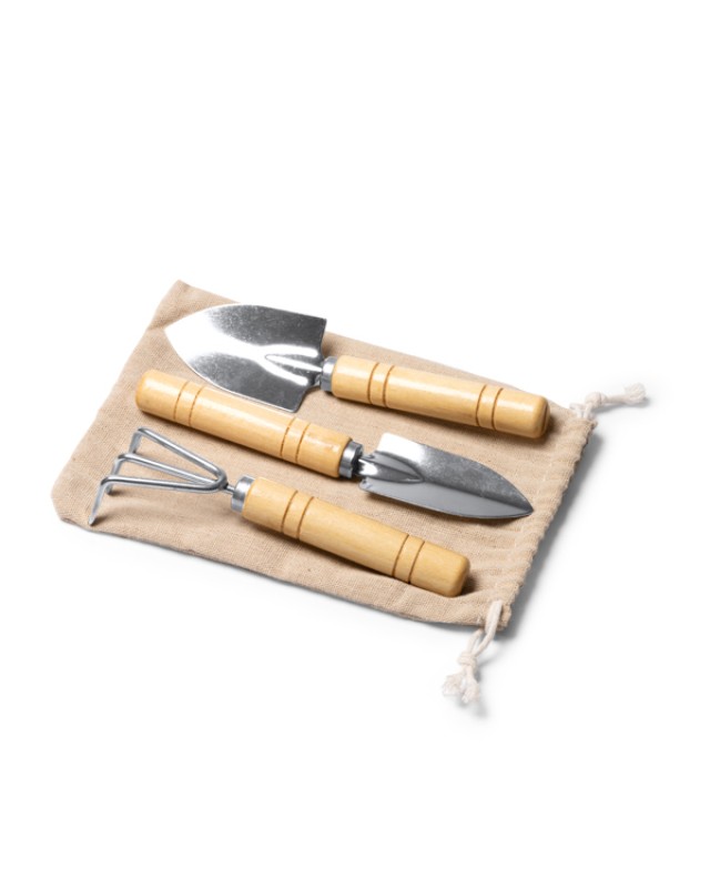 Set da giardinaggio con 3 accessori in acciaio inossidabile e manico in bambù. Include una grande lama per trapiantare, una piccola lama per trapiantare e un rastrello. Include una fodera in cotone. Confezione in scatola con design ecologico - Composizione: Acciaio inox e bambù - Misure: 14cm/19cm/2cm