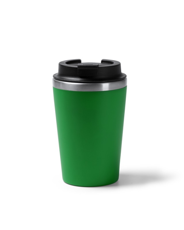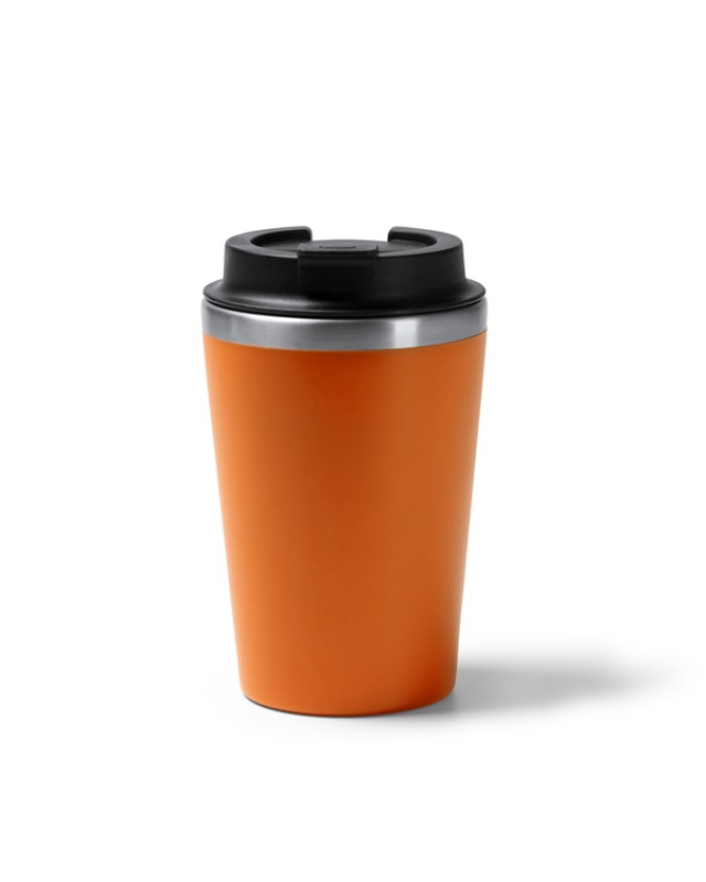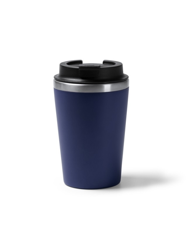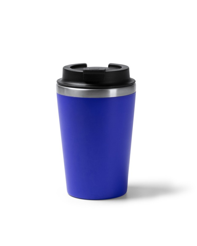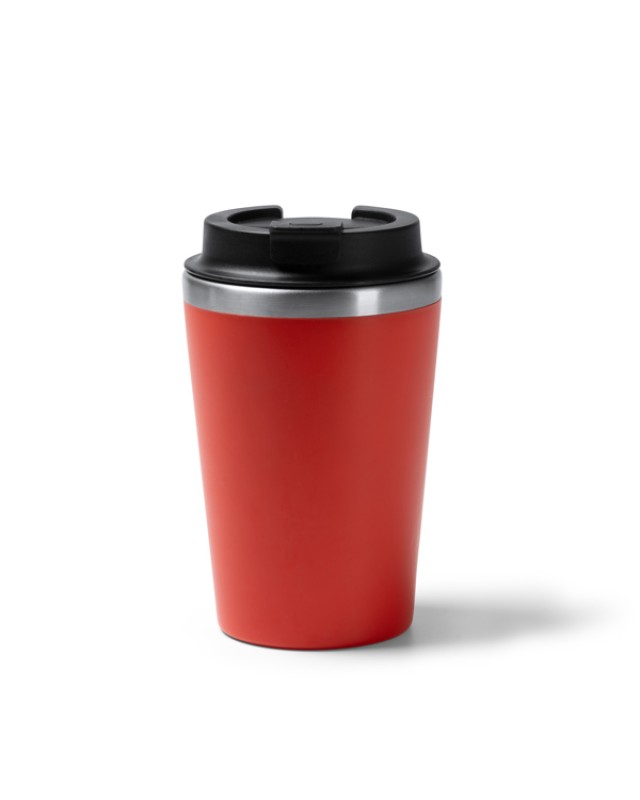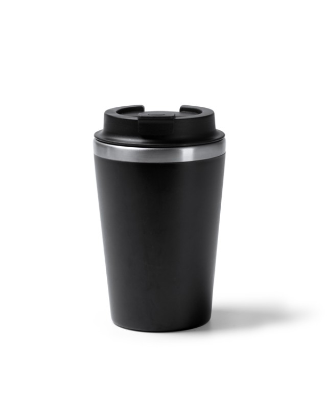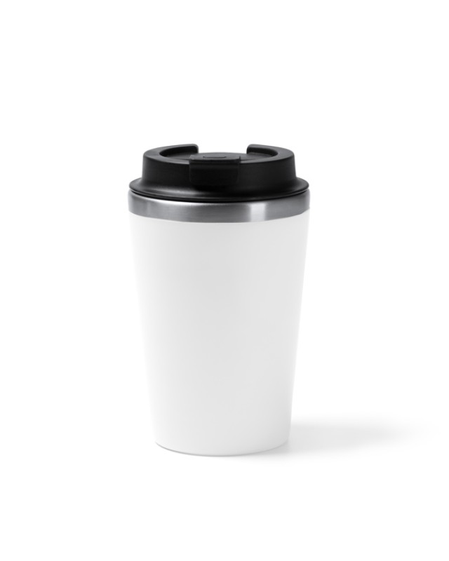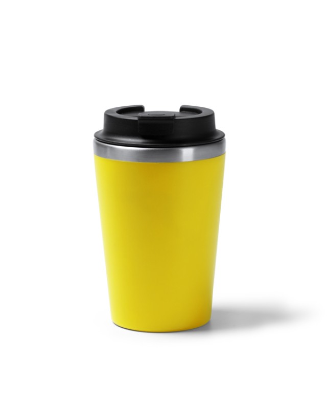 Tazza a doppia parete. Interno in acciaio inox 304, esterno in PP. Tappo a vite con erogatore. Capacità: 350 ml. Confezione in scatola. - Composizione: Acciaio inox e PP - Misure: 14,8cm/9Ø