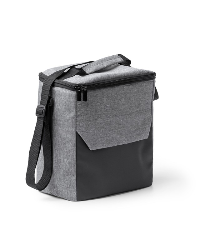 Borsa in pelle PU e RPET 300D con interno isotermico. Ampio scomparto principale e tasca esterna con chiusura a zip. Maniglia con rinforzo e tracolla regolabile. - Composizione: Pelle PU e RPET - Misure: 22cm/25cm/14cm