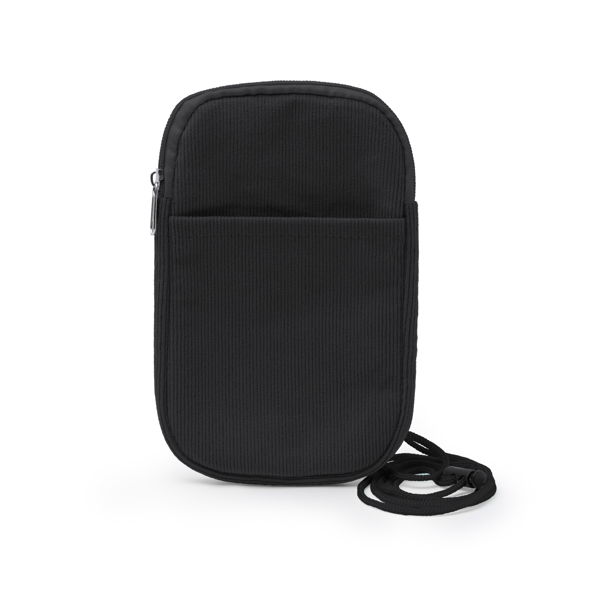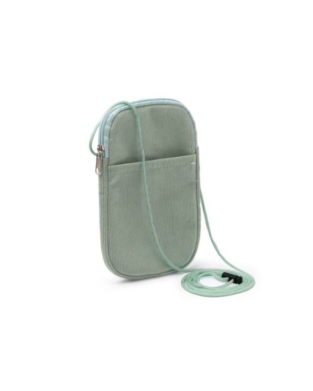 Porta cellulare realizzato in velluto a coste. Scomparto principale con chiusura a zip in tinta. Tasca esterna. Include una tracolla abbinata. - Composizione: Velluto a coste - Misure: 14cm/22cm/2cm