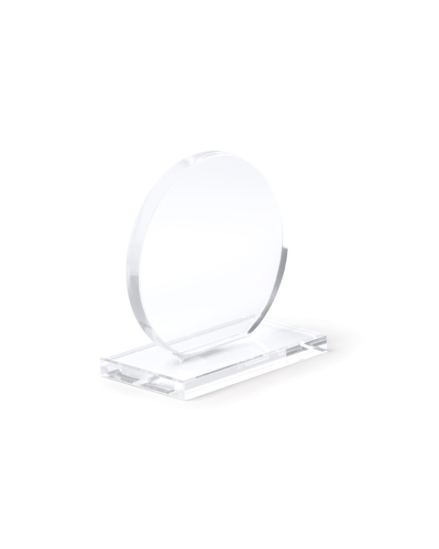Trofeo in vetro dal design circolare con base rettangolare. Include custodia nera. - Composizione: Vetro - Misure: 10cm/6cm/10,1Ø