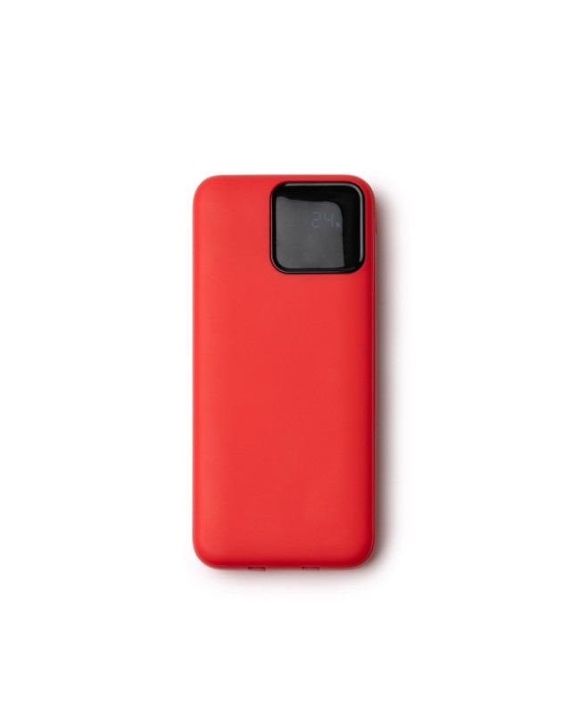 Batteria esterna da 10.000 mAh e ricarica rapida da 20 W, con corpo in ABS riciclato soft touch. Include display con indicatore di carica. Uscite Type-C e USB. Include anche un cavo Type-C e un connettore Lightning. - Composizione: ABS riciclato - Misure: 7cm/14,5cm/1,5cm