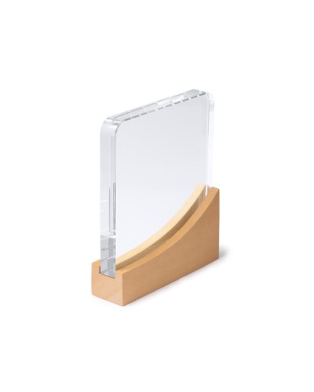 Trofeo in vetro dal design rettangolare con base in bambù. Include custodia di presentazione con design kraft. - Composizione: Vetro e bambù - Misure: 15cm/17cm/3,5cm