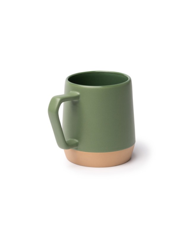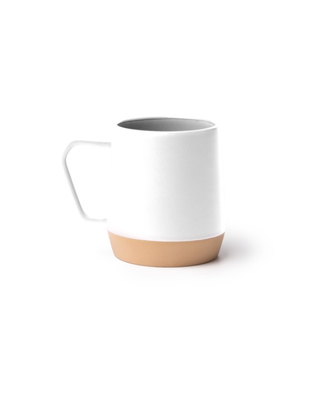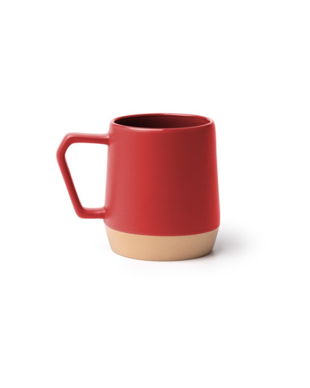 Tazza in ceramica capacità 320 ml con interno in tinta con il corpo. L'esterno presenta una finitura opaca, con la parte superiore a colori e la parte inferiore in tono naturale. Il manico a forma geometrica conferisce un aspetto originale e moderno. - Composizione: Ceramica - Misure: 9,3cm/7,2Ø