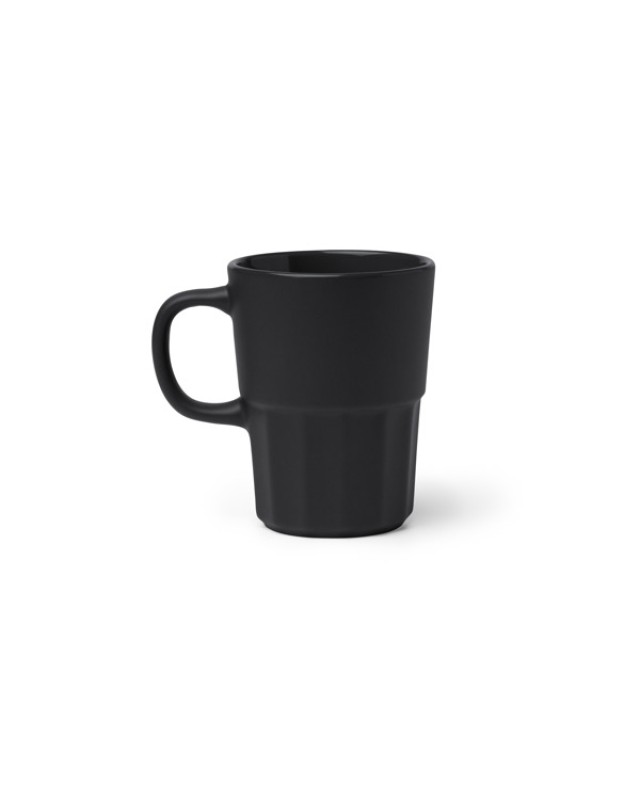 Tazza in ceramica capacità 450 ml con finitura opaca liscia nella parte superiore e pannelli verticali nella parte inferiore. L'interno è in tinta con il corpo. Il manico è arrotondato. - Composizione: Ceramica - Misure: 12,1cm/9,4Ø