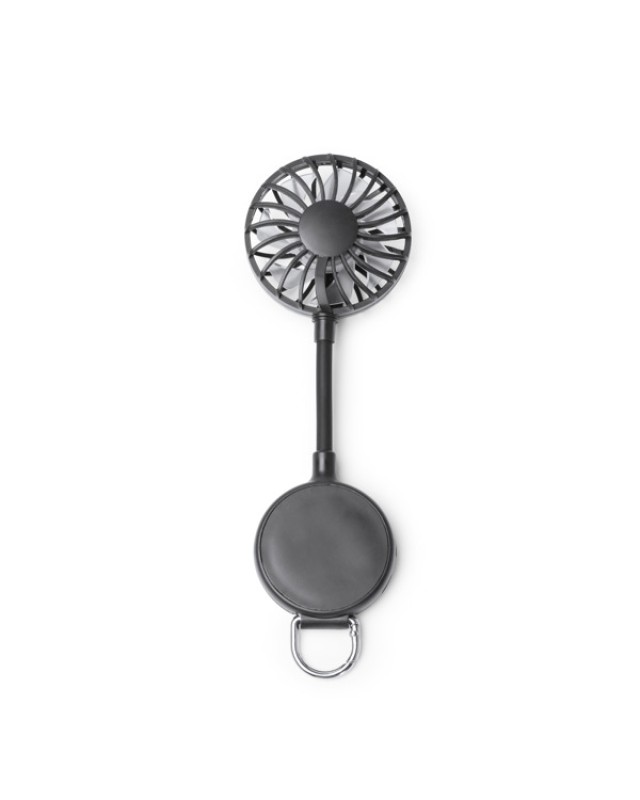 Ventilatore portatile in ABS riciclato con batteria da 500 mAh ricaricabile tramite cavo. Presenta tre impostazioni di velocità e un sistema per smartphone magnetico con anello magnetico incluso. Il moschettone integrato migliora la portabilità e funziona anche come supporto per telefoni cellulari, rendendolo un'opzione versatile e pratica. Confezione con design ecologico. - Composizione: ABS riciclato - Misure: 7,5cm/23cm/0,3cm