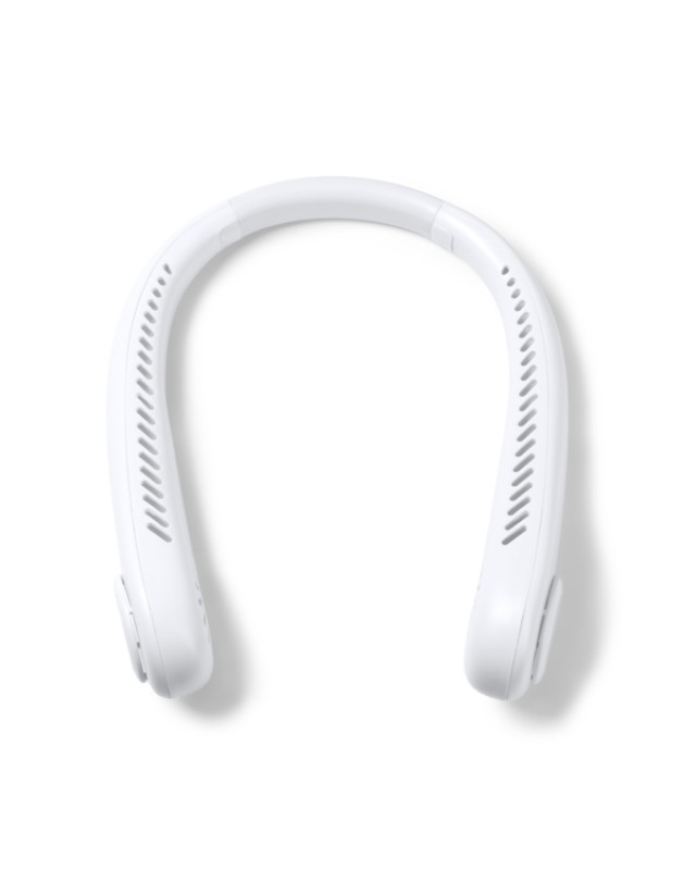 Ventilatore da collo in ABS a tre velocità. Include cavo di tipo C. Confezione in scatola con design ecologico - Composizione: ABS riciclato - Misure: 14cm/22cm/6,2cm