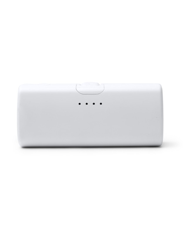 Power bank da 5000mAh realizzata in ABS riciclato con funzione torcia a LED. Uscita Tipo C pieghevole. Confezione in scatola con design ecologico. - Composizione: ABS riciclato - Misure: 8,5cm/3cm/3cm