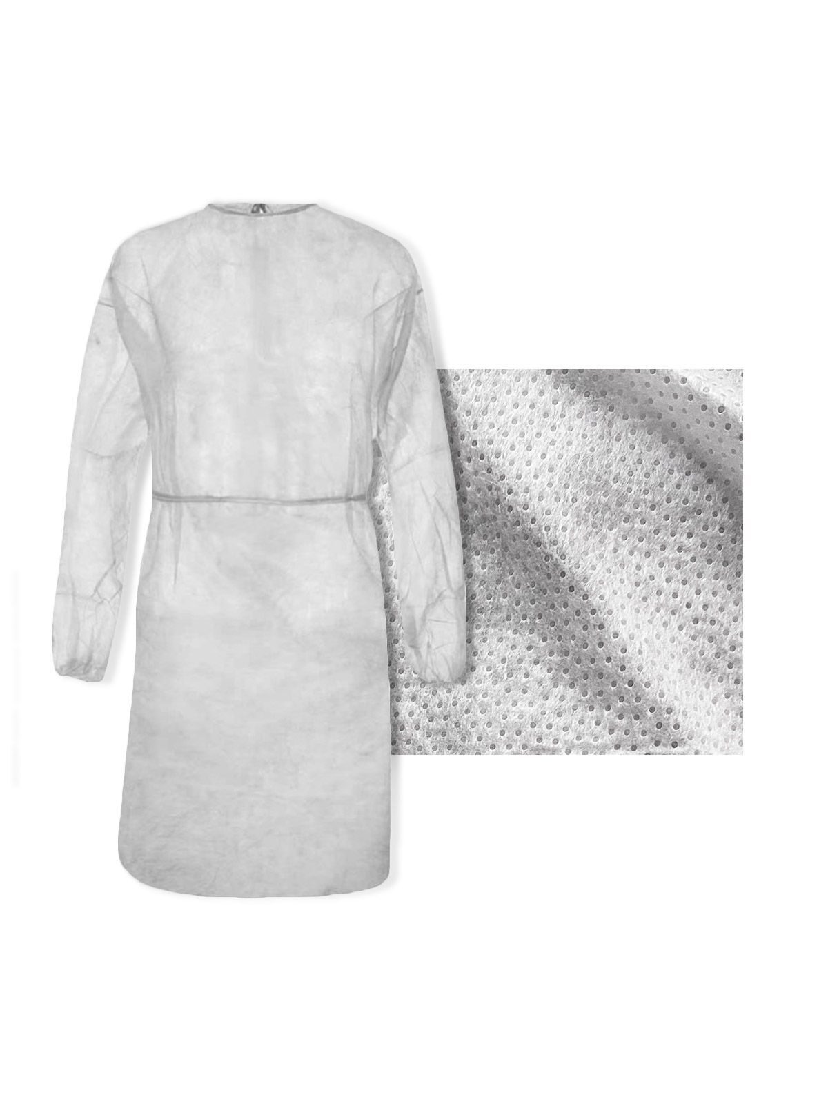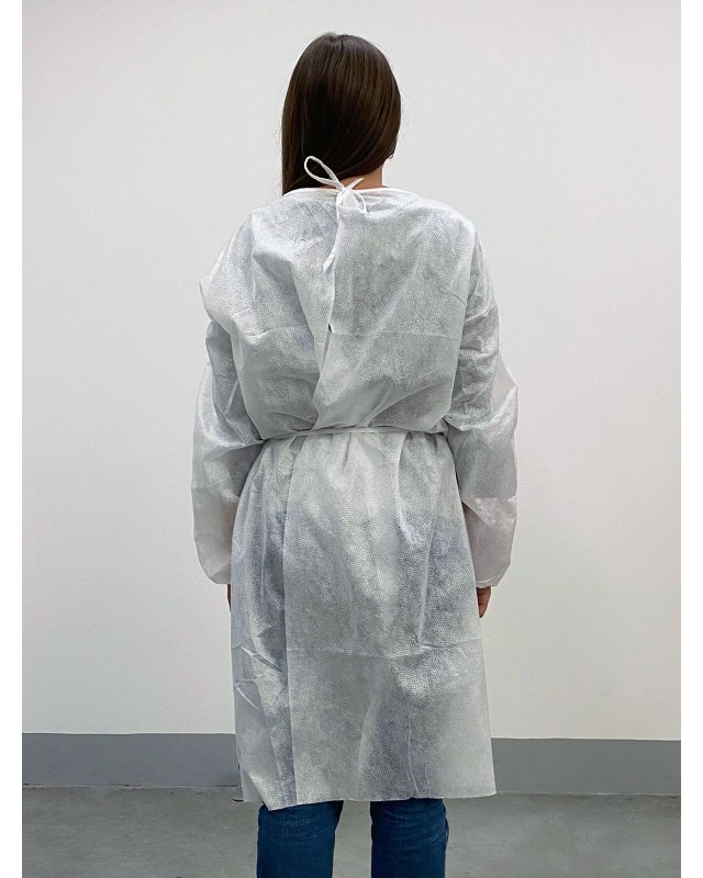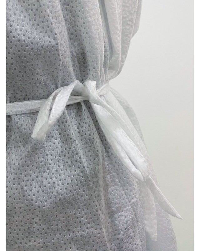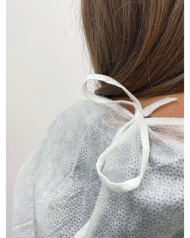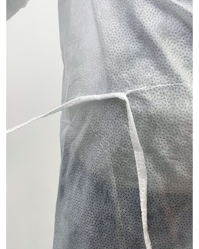 100% TNT polipropilene. Chiusura posteriore con laccio al collo, laccio in vita, elastico ai polsi. Confezionati in imballi da 10. Taglia unica, misure secondo EN ISO 13688/2013, lunghezza cm 108, circonferenza torace cm 134 (tolleranza +/- 5%). Essendo un DPI di I categoria (solo rischi minori) non sono definite o richieste particolarti classi o livelli di protezione. Idrorepellente. Marcato CE. Prodotto in Italia Prodotto con Iva agevolata.