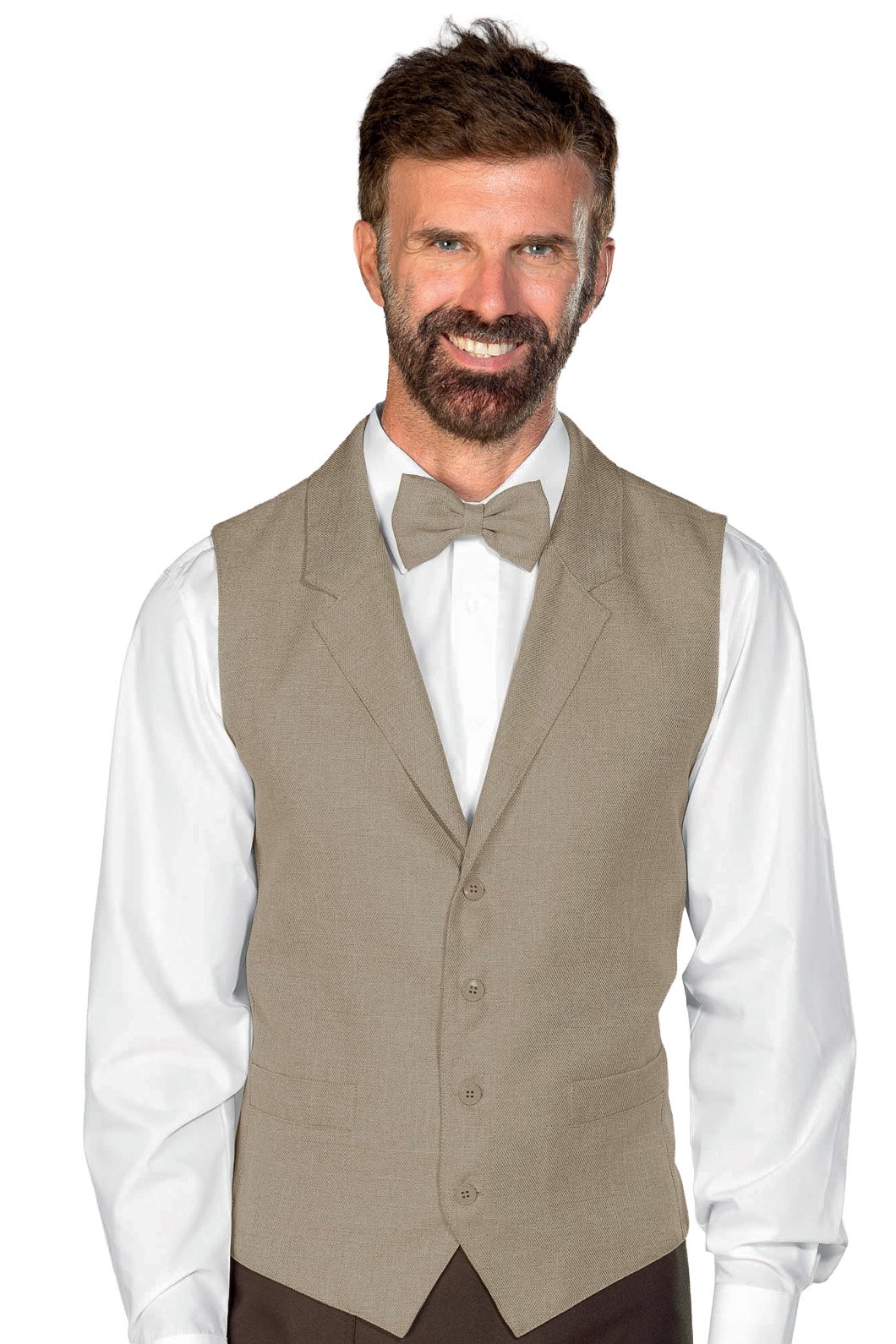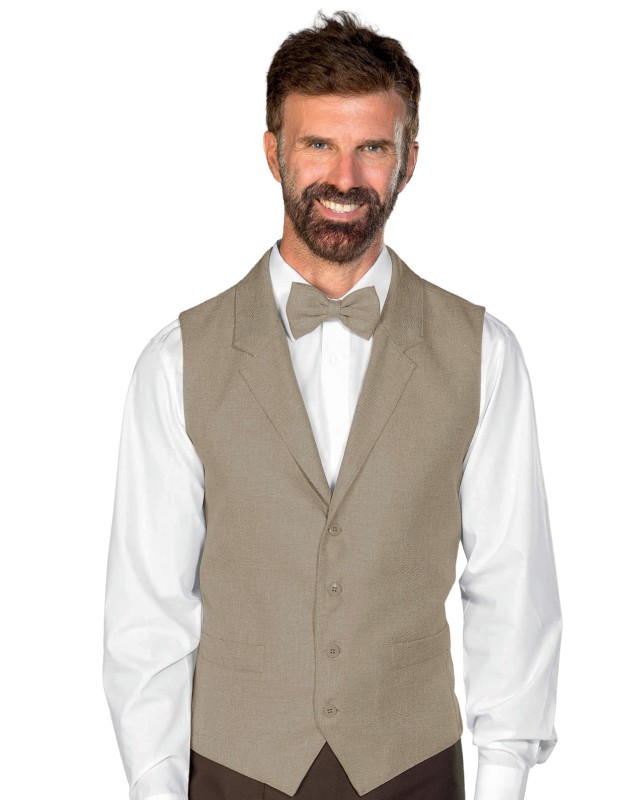Scopri questo gilet unisex nero. Ideale per settore alberghiero e servizio in sala. ideale come divisa da lavoro per bar, pub, ristoranti, enoteche e catering. Viene abbottonato con un gemello,possibile scegliere fra tinta unità o in oro lavorato. Poliestere. Peso: 220 Gr/m². Composizione: 100% Poliestere. Bottoni con asola