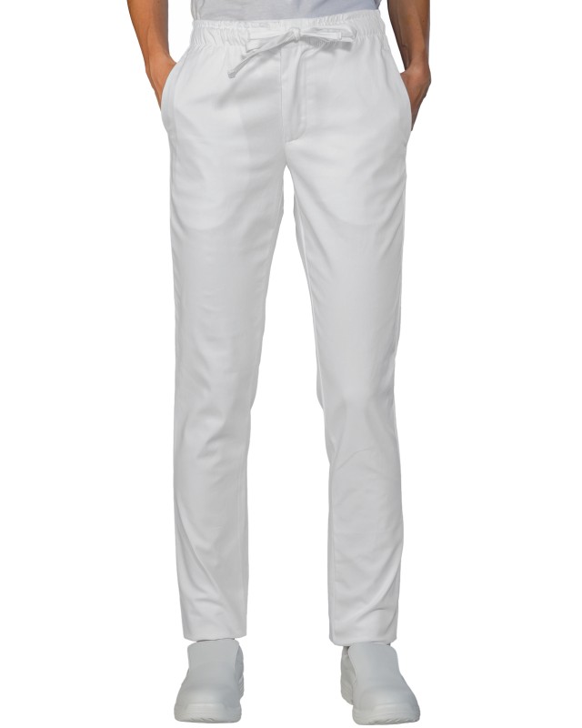 Questo pantalone bianco slim, con zip e vita elasticizzata, è ideale per garantire comfort e praticità. Ampiamente utilizzato nei settori medicale, estetico, sanitario, ospedaliero e alimentare, è perfetto come divisa da lavoro per medici, infermieri, aziende di servizi, addetti alle pulizie, cuochi e personale di cucina. Cotone. Peso: 190 Gr/m². Composizione: 100% Cotone