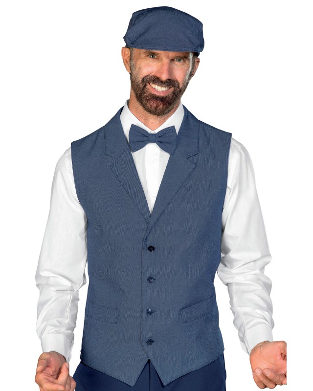 Scopri questo gilet unisex nero. Ideale per settore alberghiero e servizio in sala. ideale come divisa da lavoro per bar, pub, ristoranti, enoteche e catering. Viene abbottonato con un gemello,possibile scegliere fra tinta unità o in oro lavorato. Poliestere. Peso: 220 Gr/m². Composizione: 100% Poliestere. Bottoni con asola