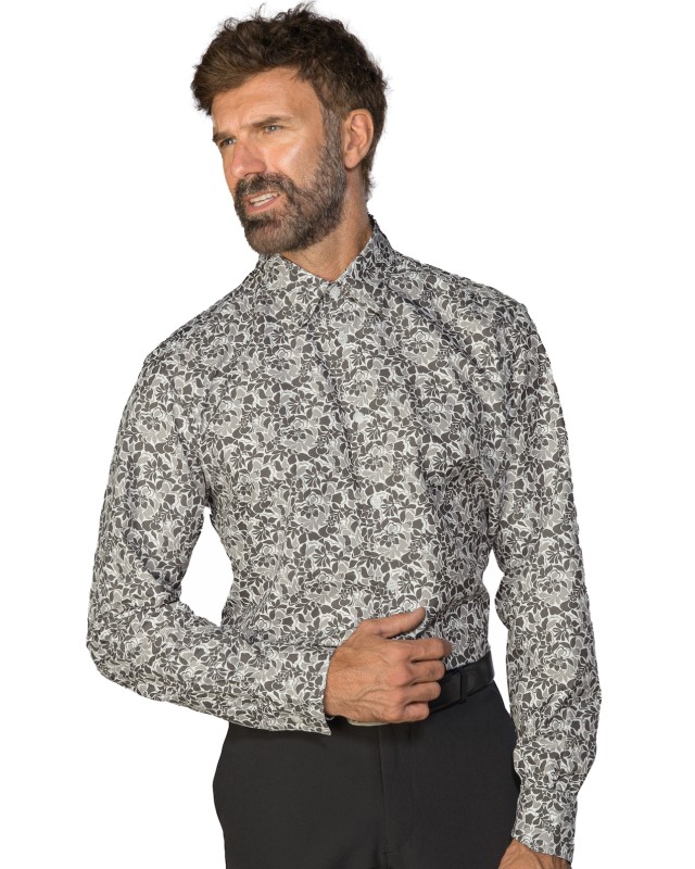 Camicia unisex Nevada con collo classico, modello da uomo e donna a manica lunga a fiori superdry light fantasy 01. Ottima camicia floreale per settore alberghiero e servizio in sala. Per dare vivacità al tuo bar, pub, ristoranti, enoteche e catering.