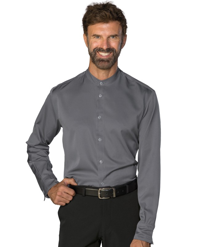 Camicia unisex Detroit con collo coreano a manica lunga in tecnostretch grigio. Realizzato in tessuto fresco, resistente e leggero e facile da lavare. Grazie alla sua elasticità garantisce comfort e libertà di movimento. Ottima per settore alberghiero e servizio in sala. Divisa da lavoro per bar, pub, ristoranti, enoteche e catering. Poliestere Spandex Manica Lunga. Peso: 145 Gr/m². Composizione: 96% Poliestere 4% Spandex