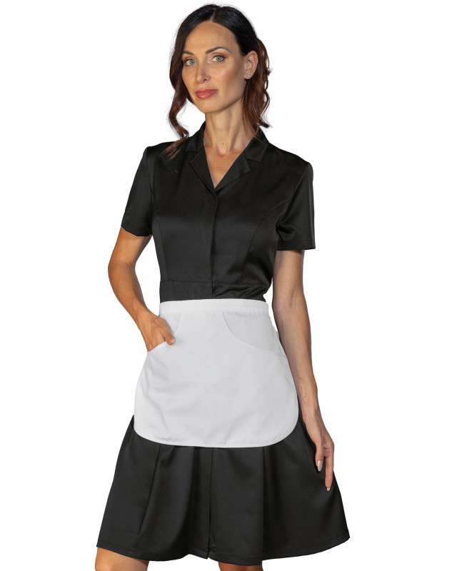Abitino Mayflower Nero con grembiulino, elegante e professionale, ideale per il settore estetico e servizio ai piani. Realizzato in tessuto fresco, resistente e leggero e facile da lavare. Grazie alla sua elasticità garantisce comfort e libertà di movimento. Perfetto per alberghi, hotel e personale di servizio. Poliestere Spandex. Peso: 145 Gr/m². Composizione: 96% Poliestere 4% Spandex