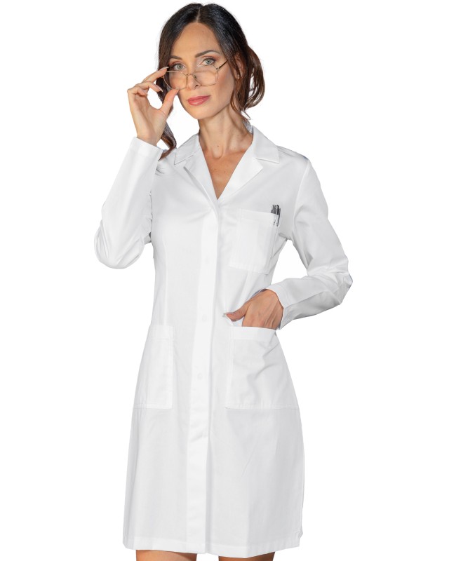 Il camice Singapore è un camice da donna a manica lunga bianco in tessuto sostenibile. Per settore medicale, estetico e sanitario. Ideale come divisa da lavoro per medico infermiere dottoressa, farmacista. Tasche e taschino al petto bottoni a pressione. Lyocell Poliestere Riclicato Manica Lunga. Peso: 180 Gr/m². Composizione: 53% Lyocell 47% Poliestere Riclicato