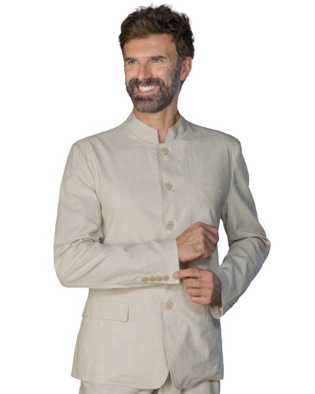La giacca Riad è una giacca da uomo lino. Ideale per settore alberghiero e servizio in sala. divisa da lavoro per bar, pub, ristoranti, enoteche e catering. Modello sciancrato con collo coreano. Realizzata in poliestere. Cotone. Peso: 120 Gr/m². Composizione: 60% Cotone 40% Lino