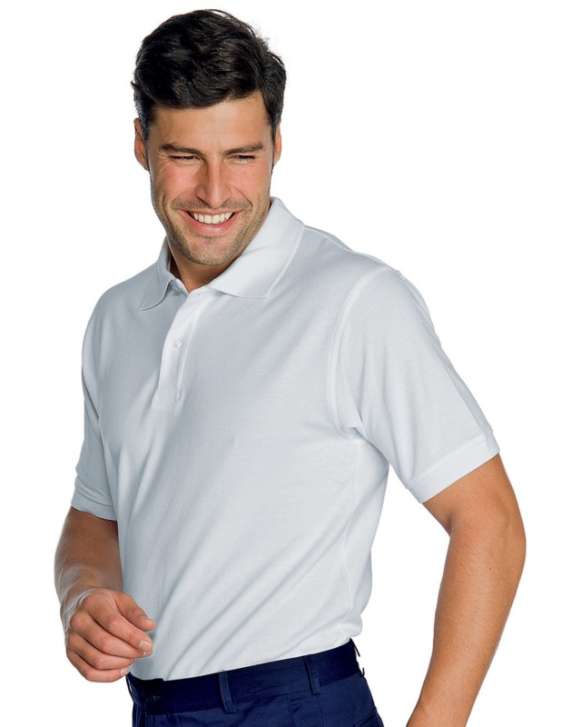 Polo unisex a mezza manica bianco. Ottima per settore alberghiero ed estetico. Ideale come divisa da lavoro per bar, pub, ristoranti, alimentari e catering. Cotone Mezza Manica. Peso: 200 Gr/m². Composizione: 100% Cotone