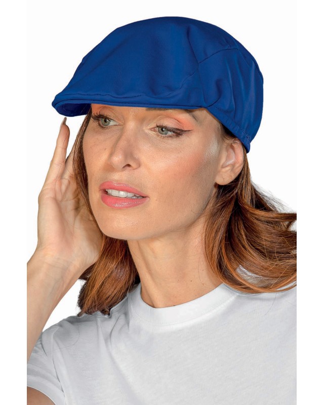 Coppola regolabile tramite velcro e visiera rigida blu cina. Per il settore alberghiero e ristorazione. Divisa lavoro per cuoco, bar, pub, ristoranti, negozi alimentari e cucine. Usata in cucina in alternativa alla bustina, alla cuffia o al cappello. Poliestere Cotone. Peso: 195 Gr/m². Composizione: 65% Poliestere 35% Cotone