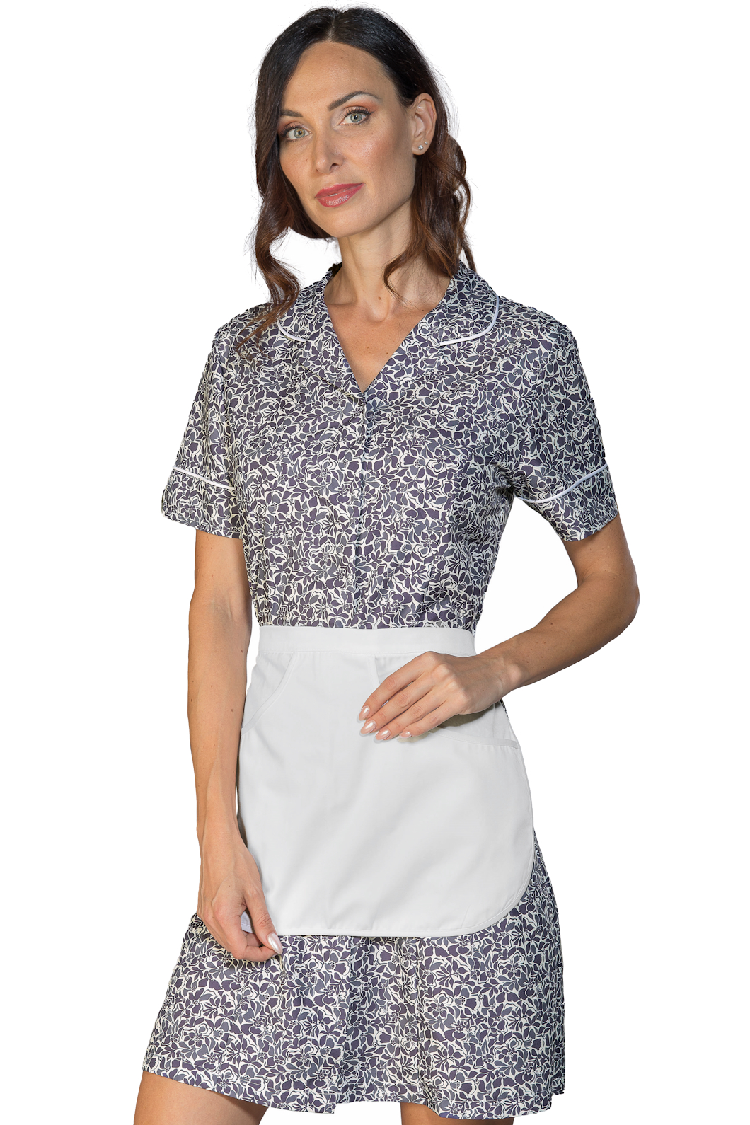 Il camice Firenze floreale fantasy 02 M/M è un camice con grembiulino da donna a mezza manica. In tessuto superdry light leggero e antimacchia. Per settore alberghiero, privato o alimentare. Ideale come divisa da lavoro per pulizia al piano e domestica o come camice da lavoro per imprese di pulizie e servizi.