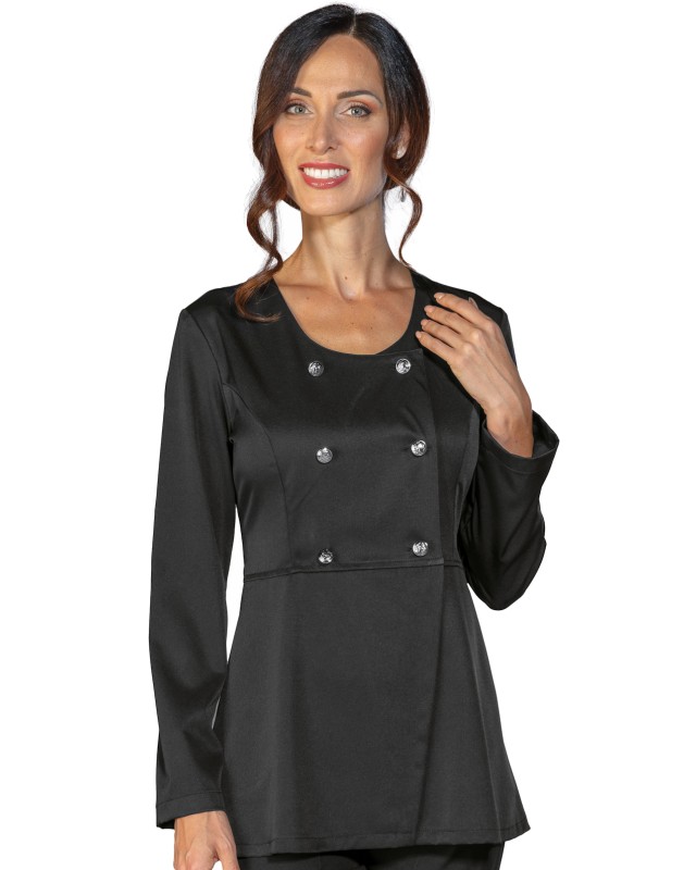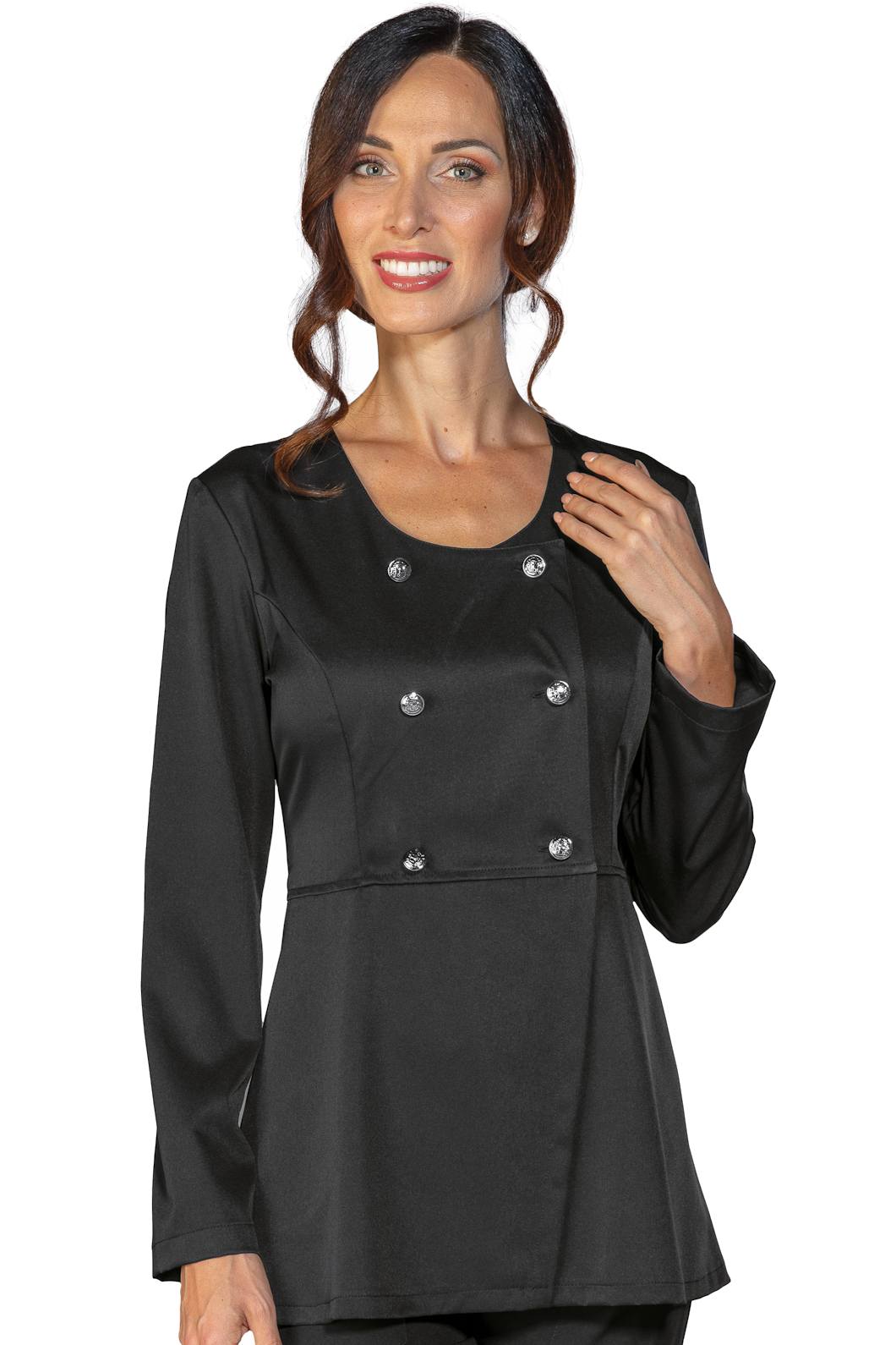 L'abitino Malta nero, realizzato in Tecnostretch, unisce stile e funzionalità. Perfetto per i settori sanitario, estetico e alberghiero, il tessuto tecnico garantisce comfort e freschezza per tutta la giornata lavorativa. I bottoni decorativi e il taglio elegante rendono questo capo professionale e raffinato. Lavabile e di lunga durata. CAMICE ESTETISTA Poliestere Spandex Manica Lunga. Peso: 145 Gr/m². Composizione: 96% Poliestere 4% Spandex