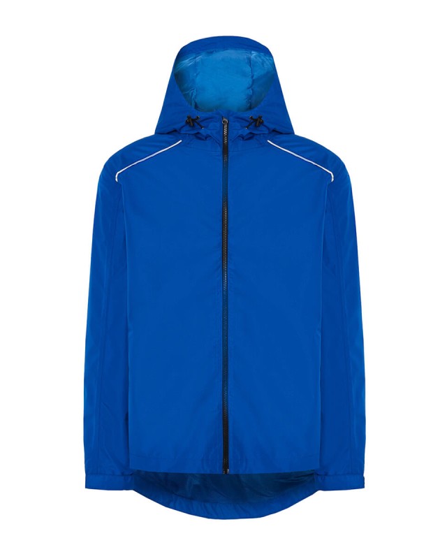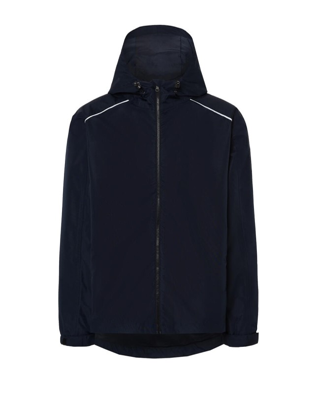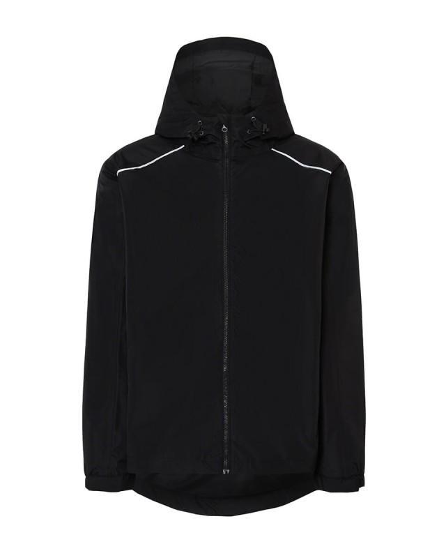 Giacca impermeabile con cappuccio fisso; Cuciture termosaldate; Cordino regolabile con fermo sul collo; Tasche laterali con cerniera; Tasca interna sul davanti a destra; Fodera interna in rete con cerniera sul fondo; Polsini elasticizzati con chiusura in velcro; Profili sul davanti e sul retro delle spalle; Orlo posteriore curvo; ; ARRIVO PREVISTO GIUGNO Composizione: 100% poliestere riciclato. Peso: 115 gr/m2. Vestibilita: regolare. Etichetta: rimovibile.