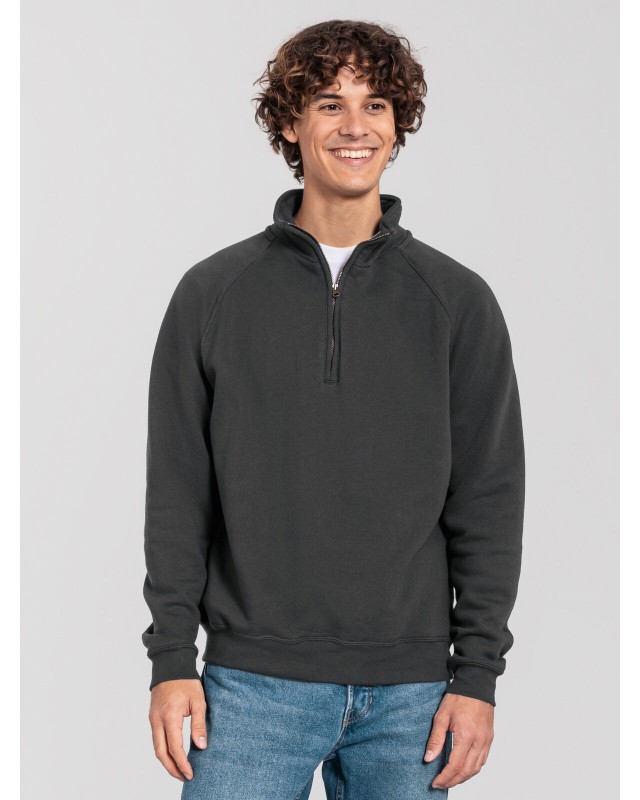 70% cotone, 30% poliestere. Felpa dal design pulito, con pratico colletto rialzato con zip, morbida superficie in 100% cotone pettinato rings pun ideale per la personalizzazione, internamente felpata. Dotata di etichetta removibile. Realizzato in modo sostenibile con fibre CiCLO®. Athletic Heather: 67% cotone / 33% poliestere.