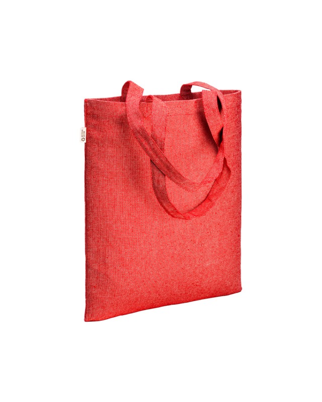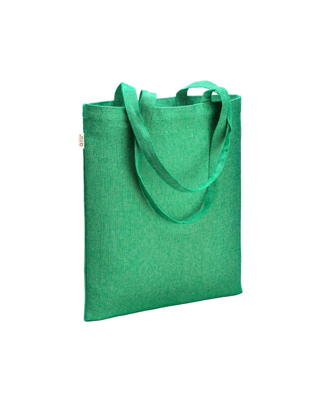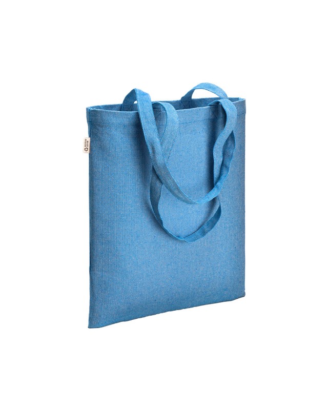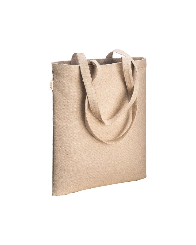 Borsa shopper in cotone riciclato 300 g/m2 con effetto melange con manici lunghi Materiale: Recycled cotton Dimensioni: 38 X 42 CM - HANDLES 2,5 X 70 CM - 7 LT Grammatura: 300 G/M2 - 96% REC COTT + 4% REC POLYESTER