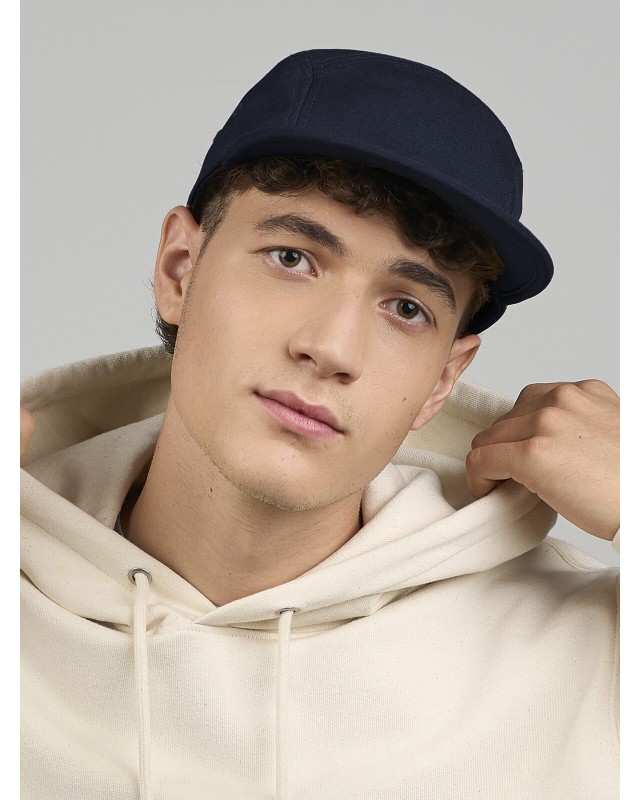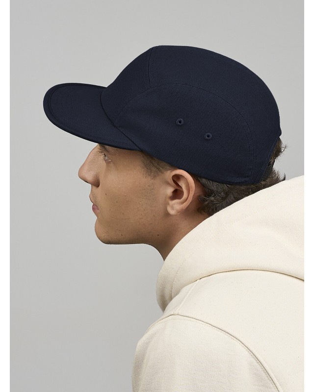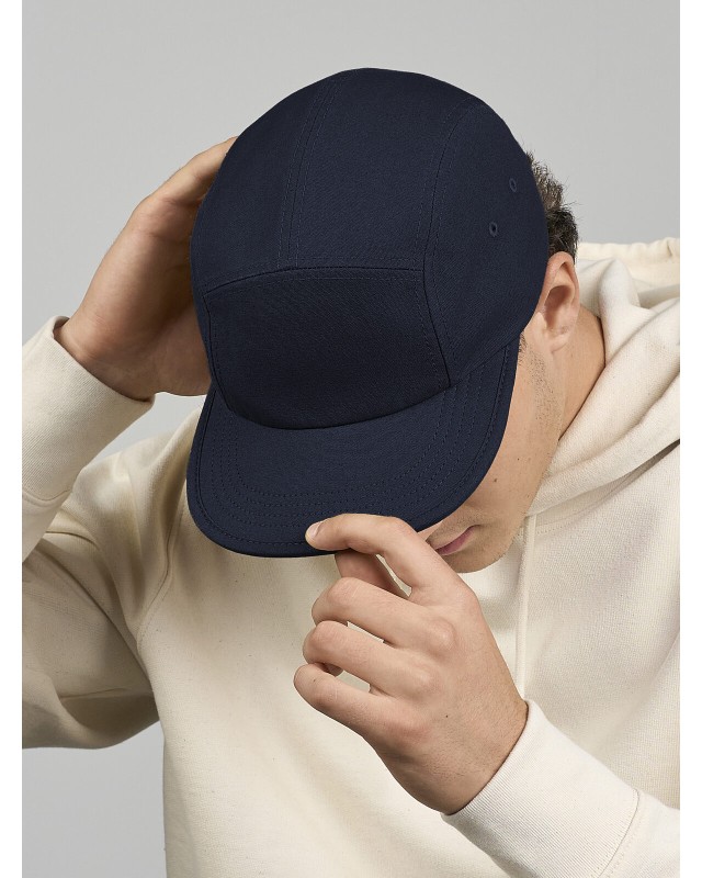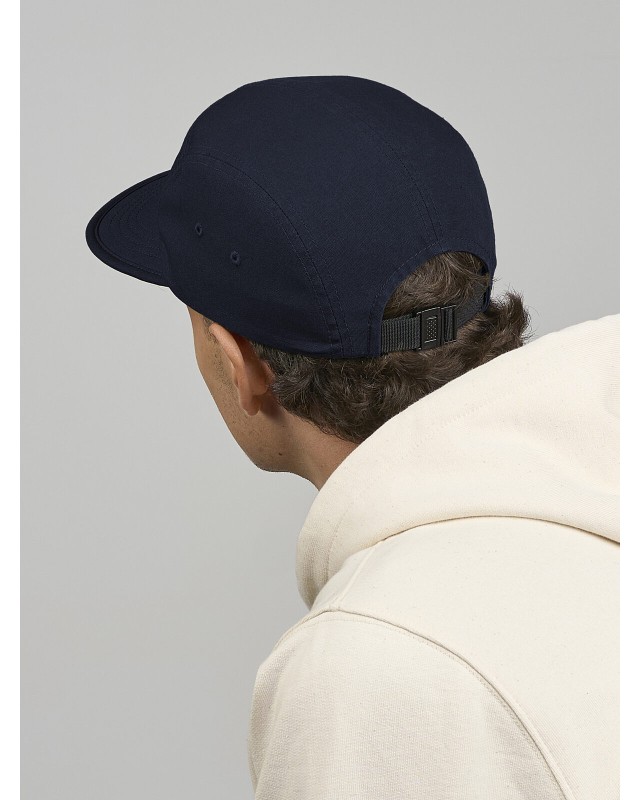 80% cotone organico, 20% cotone riciclato. Cappellino camper destrutturato personalizzabile a 5 pannelli in canvas di cotone organico e riciclato, con pannello frontale non strutturato per una vestibilità morbida. Visiera flessibile ReTraze® riciclata dalle reti da pesca, chiusura regolabile con fibbia in plastica e anello elastico. Trattamento lavaggio a capo finito per una morbidezza extra e un look vissuto, perfetto per uno stile casual e sostenibile.