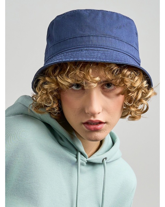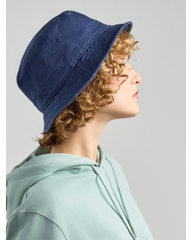 80% cotone organico, 20% cotone riciclato. Cappello bucket personalizzabile in twill di cotone organico e riciclato. Il doppio lavaggio “garment washing” dona maggiore morbidezza e un effetto leggermente vintage, garantendo comfort e uno stile distintivo.