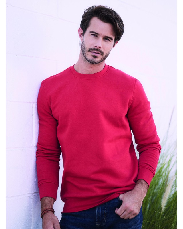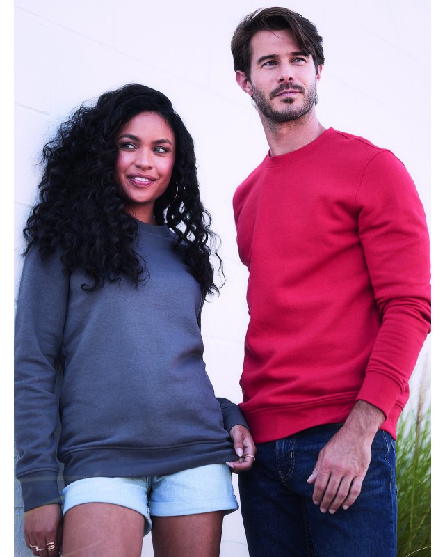 80% cotone, 20% poliestere; filato ad anello, multifilamento; 3 fili in pile. Felpa unisex con interno felpato per maggiore comfort e calore, dotata di mezzaluna centrale sul retro ideale per personalizzazioni. Rifinita con costina elastica 1x1 tono su tono su collo, polsi e fondo. Presenta etichetta taglia tessuta al collo e etichetta di manutenzione a strappo sul lato per praticità e comodità.