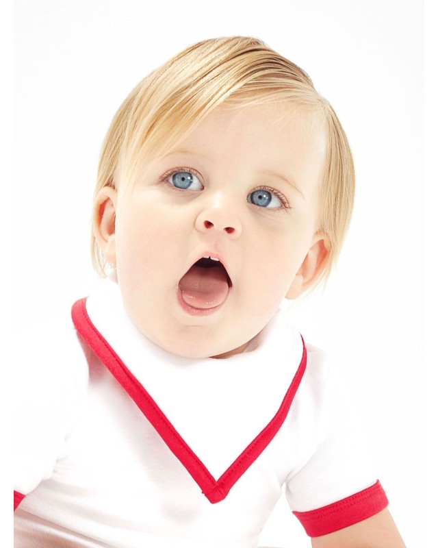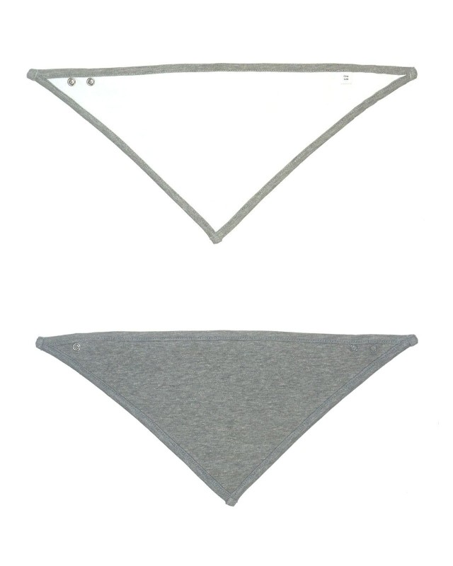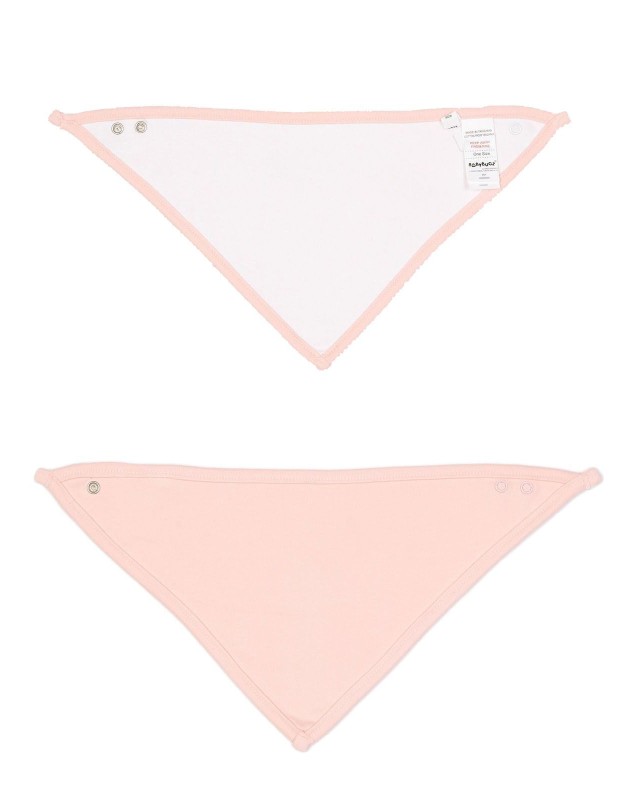 100% cotone. Bavaglino reversibile. Colore unico da un lato, due colori a contrasto dall'altro. Due bottoni a pressione sul lato posteriore del collo, posizionati sul bordo per mantenere la forma. Etichetta strappabile.