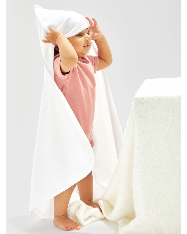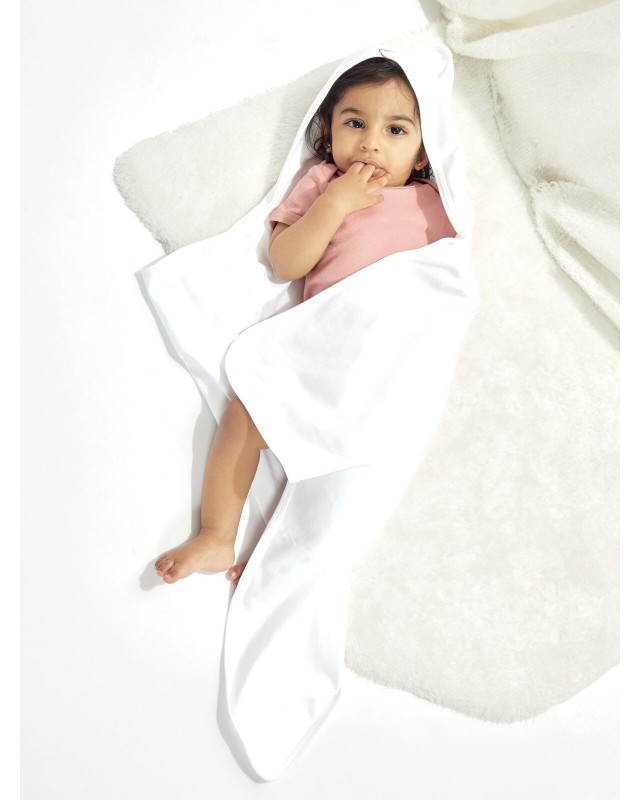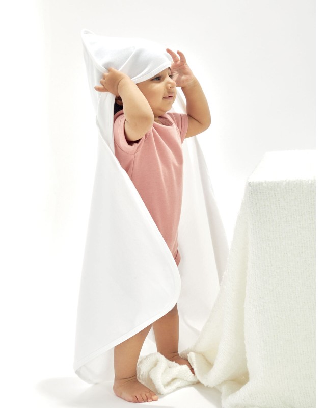 100% Cotone Organico. Copertina monostrato con chiusure sui bordi per mantenere la forma. Cappuccio triangolare in uno degli angoli. Etichetta strappabile.