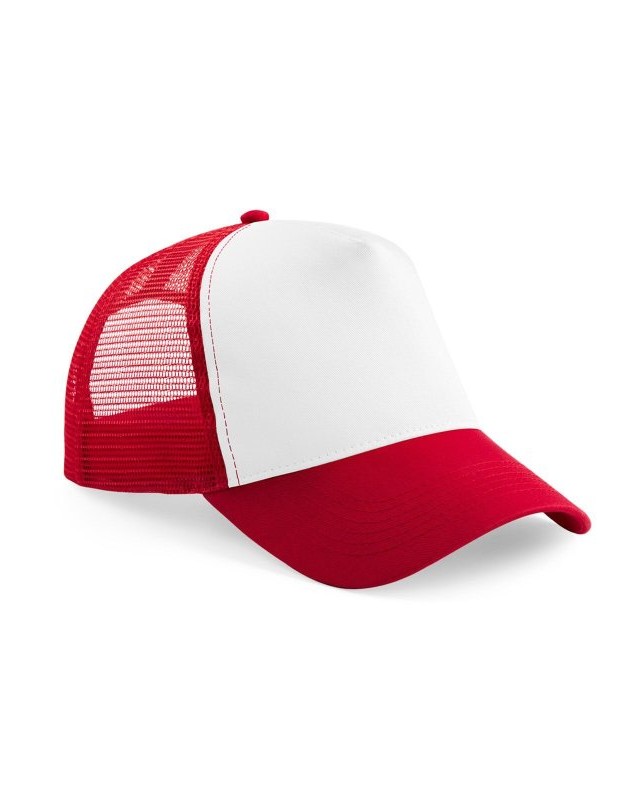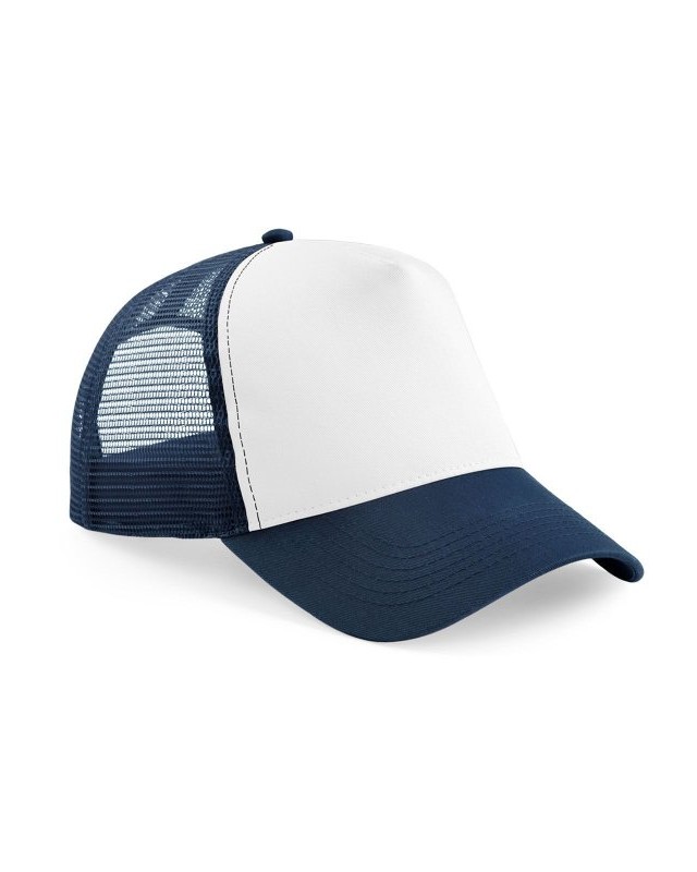 Pannello frontale e visiera 100% cotone, pannelli posteriori 100% in rete di poliestere. Design a 5 pannelli, visiera pre-curvata, regolazione della misura in stile retrò, etichetta removibile per cambiare più facilmente il marchio, disponibile anche nella taglia per adulti.